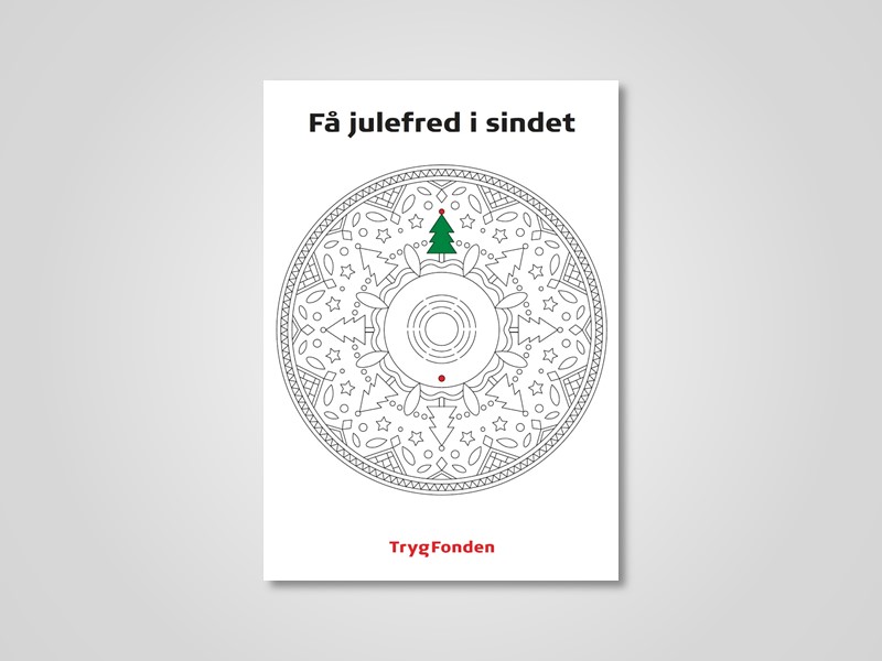 TrygFonden har lavet kort med mandala-mønster på forsiden, der kan farvelægges. Det giver ro i sindet - sammen med en røgalarm.