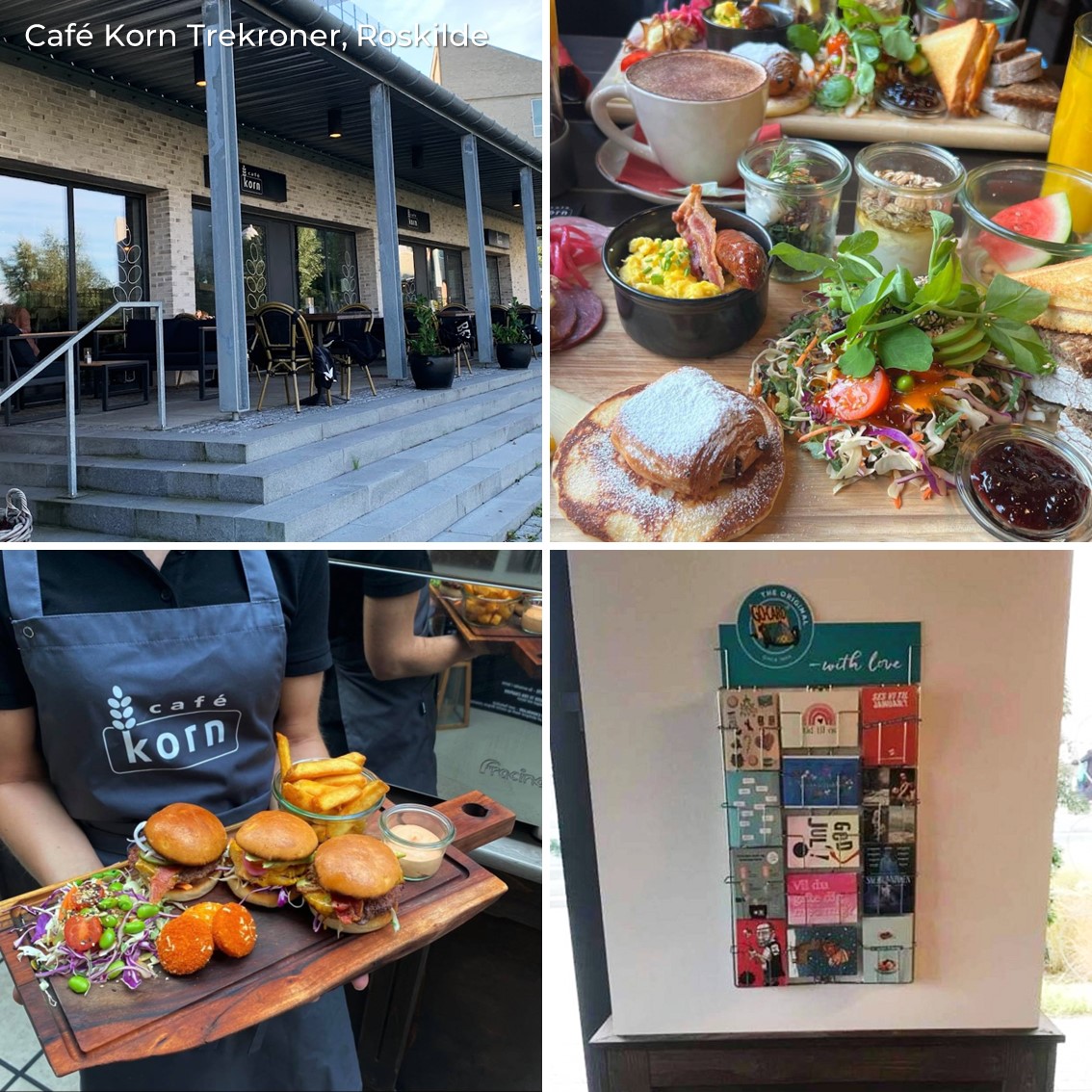 Café Korn Trekroner er en stor flot café i Roskildes hastigt voksende, nye bydel. Udover dejlig kaffe er der et stort udvalg af burgere, friske salater, frokostplatte, sandwich, og i weekenden er der en dejlig brunchbuffet. Velkommen i GO-CARD-familien.