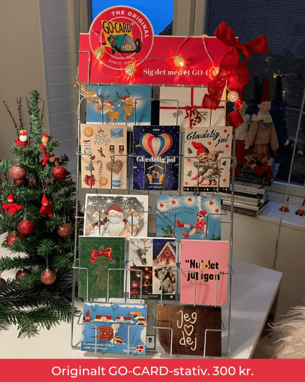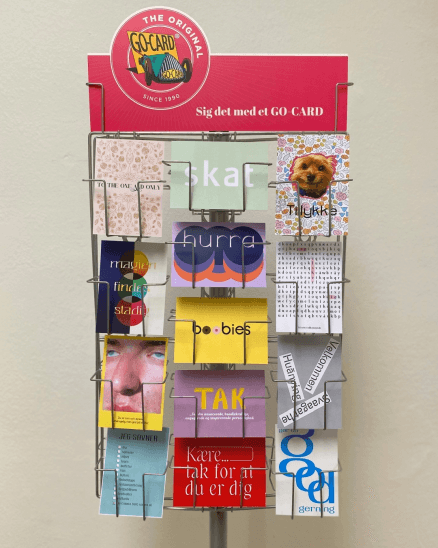 Et ægte, dekorativt GO-CARD-stativ. Læs mere og køb det her. Så er der autentisk caféstemning derhjemme. Stativet koster 300 kr., hvis man selv henter det på vores kontor på Frederiksberg, og 375 kr. med forsendelse.