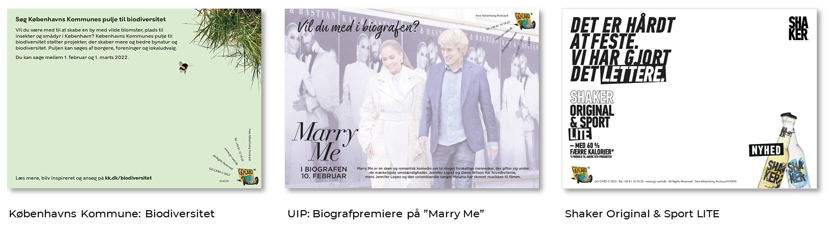 Mange kommercielle annoncører og organisationer har sat GO-CARD på medieplanen. Du kan altid finde flere eksempler på vores Facebook og Instagram.