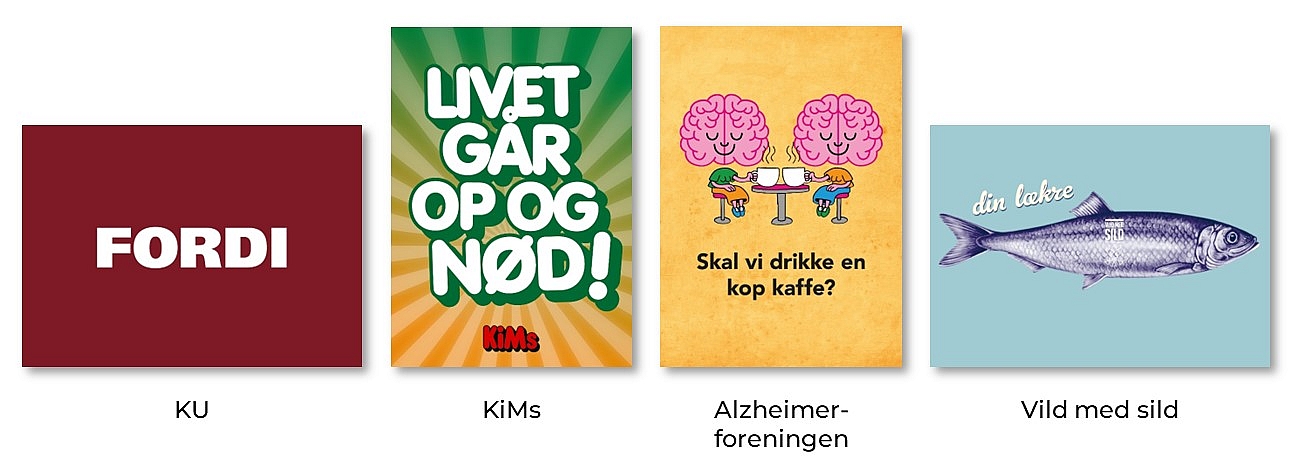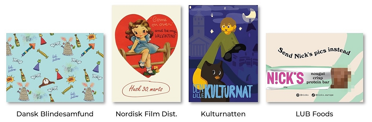 Her er nogle eksempler på kampagner fra i år (2023). Hver torsdag er der jo nye, spændende kort i stativerne til de mere end 475.000 brugere.