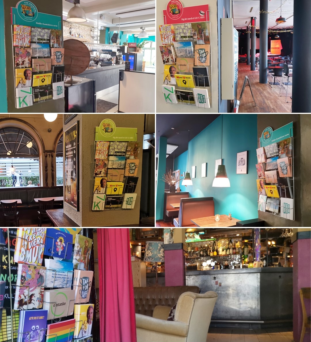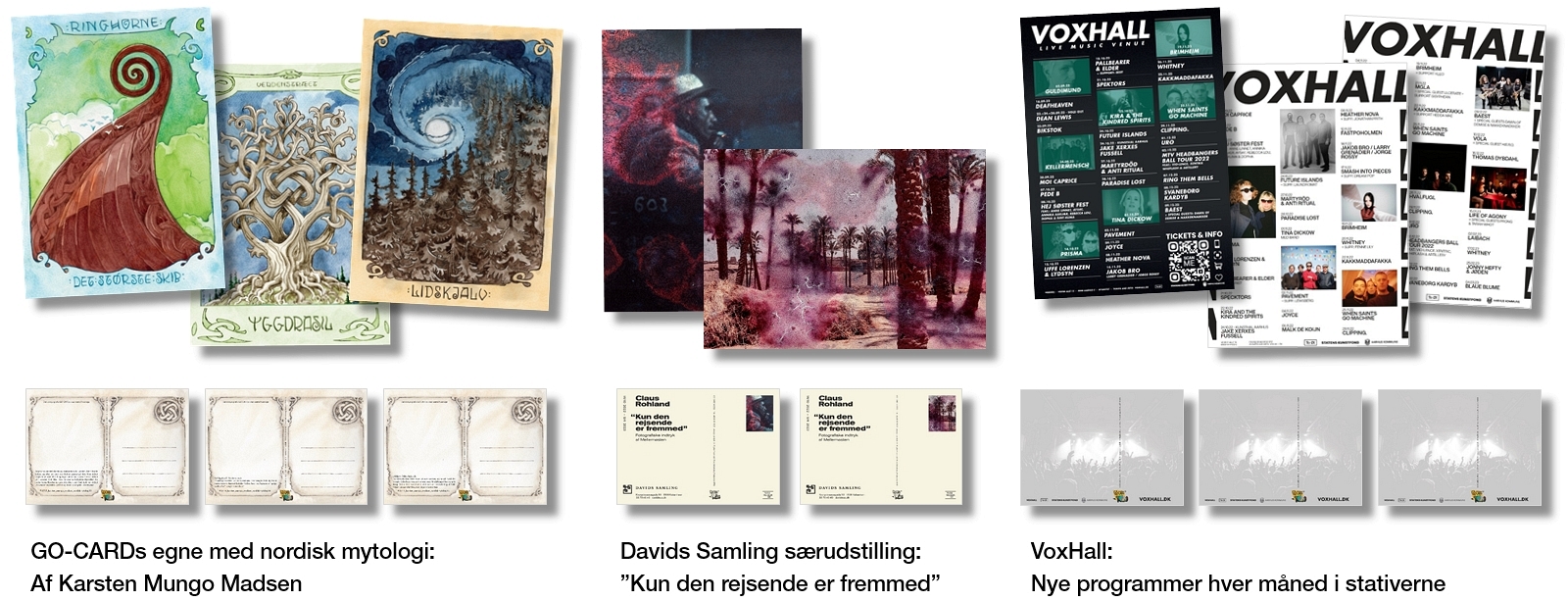 Udover kort i GO-CARD-stativerne distribuerer vi også magasiner, produktkataloger, programmer, smagsprøver osv. til caféer og biografer.