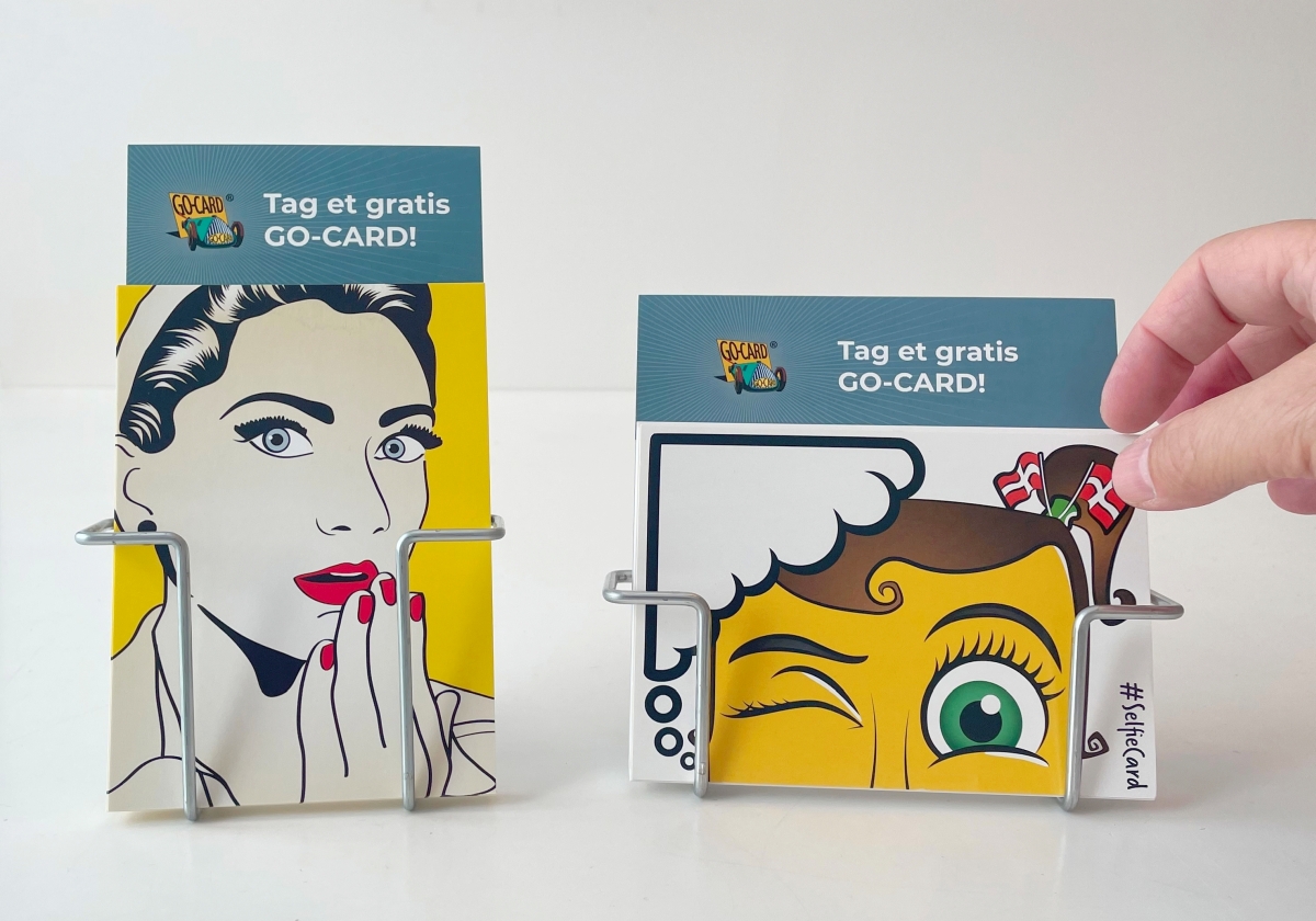 Stativet er uden postkort, men ved afhentning er du meget velkommen til at tage nogle GO-CARDs med.